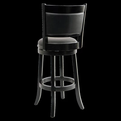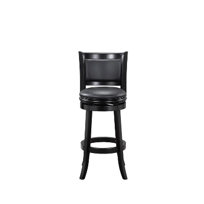 The Boraam Augusta Swivel Stool, features fire-retardant, high-density foam in the padded seat and back and stretchers for stability and durability. The round swivel seat, footrest, and contoured back ensure comfort, even for long periods of sitting. Available in 3 finish options, this stool will blend with most decorating schemes. These bar stools are perfect for using in any kitchen or dining setting.