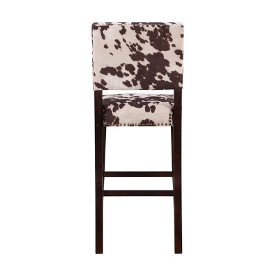 The Corey Stool has a classic traditional style accented with transitional flair. The stool has a bold plush upholstered seat and back embellished with nail head trim. The straight-lined legs are finished in a beautiful stain. Perfect for adding to a kitchen counter, bar or island! Some Assembly Required. 275 pound weight limit.
