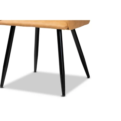 2pc Eris Tan Leather Upholstered And Metal Dining Chairs Black/Tan – Baxton Studio