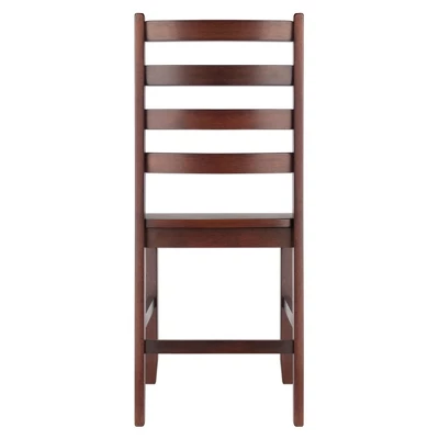 The 2-Piece Hamilton Ladder Back Chair Set from Winsome brings a brilliant addition to your dining ensemble. Made from sturdy hardwood, these wooden dining chairs with a glossy finish add a homey feel to your dining space. Plus, these armless dining chairs feature a ladder-back design that scores high on the aesthetics without compromising on your comfort. Overall size is 16.5″W x 18.6″D x 34.7″H, can hold up to 220lbs. Seat height 17.9″H. Assembly is required, ships in 1 box.