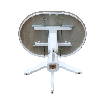 - With 12″ leaf, table expands to 36″ x 48″