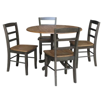 42″ Albion Drop Leaf Dining Table With 4 Madrid Ladderback Chairs – International Concepts