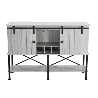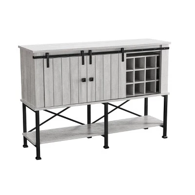 Keep your wine stored in an organized way with this wine cabinet. A built-in wine rack lets you store up to nine bottles of your favorite wines, glass doors and reveal shelved storage for plates, serveware, and handles of your preferred spirits, while lower shelf is great for showing off display plates or mugs.