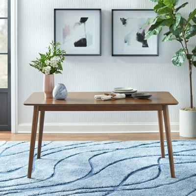 - Rectangular shape table with rounded edges and tapered angled legs