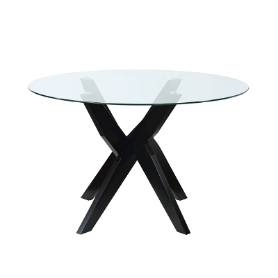 - Constructed of hardwood solids in a black color finish with round glass table top