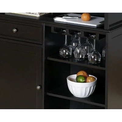 Get ready to serve your friends and family in style from the comfort of your own watering hole with this Homestyles Americana Black Bar. Enjoy plenty of storage for all your mixers, glassware, and drink-related items. Invite a few friends to pull up a stool and rest their feet on the footrail while they tip one back.