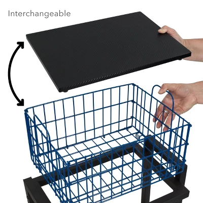 The Transformable 2-Tier Cart System provides efficient mobile storage for use in the kitchen, office or garage. Whether you are entertaining or just need extra storage this is the perfect car to suit your needs. As your need changes, you can interchange the shelves and basket. The high quality, powder-coated steel frame is built for years of use. Four casters (two locking) allow for effortless movement. Contains 1 premium laminated shelf and 1 wire basket with liners. Each shelf allows for 12″ height and a weight capacity of 33 pounds per shelf.