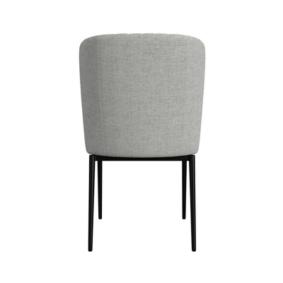 Our HomePop upholstered dining chair features channel back in durable textured solid fabric and matte-black finished metal legs. This modern style chair exudes appeal that complements andy dining table or seating area. The silhouette boasts clean lines and will fit well with your existing décor. sold in a set of 2. Easy to assemble and maintain, spot clean only.