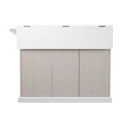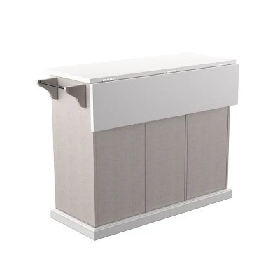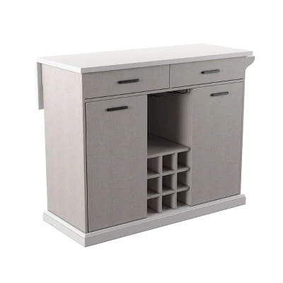 Store essentials in style with the Aiden Lane Daltaire Expandable Kitchen Island with Storage. A drop-leaf countertop provides extra work or dining space, while spacious cabinets and drawers organize glassware and utensils. Tuck this freestanding island into your dining room to serve up cocktails at your next dinner party, or add to your kitchen to keep food prep supplies and lunchboxes within reach. From small spaces to your open concept floorplan, this two-tone island puts clutter in its place.