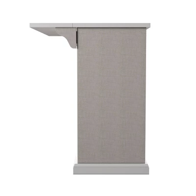 - Gray and white finish with black hardware