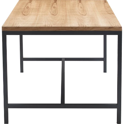 Bring home a dose of welcoming industrial style with this modern dining table from iconic American designer Finch. A generously sized, ash veneer tabletop is made in a light-toned oak finish, and black metal creates a strong, stylish frame and legs. Charming wood grains on the surface add a bit of rustic charm to this dining room furniture. The combination of simple, quality materials creates a stylish spot you’ll love returning to again and again, whether for everyday dinners, holiday feasts, game night or craft projects.