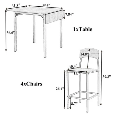 Having a small dining room? Then this drop leaf dining set will help a lot. Designed with a drop leaf on both sides, extend your room with extra space when opened. Besides, for saving space, all of the chairs can be tucked under the table no matter if the drop leaf is folded. Made of MDF and a premium iron frame, this dining set provides a stylish dining space for 4 while keeping a long time using.