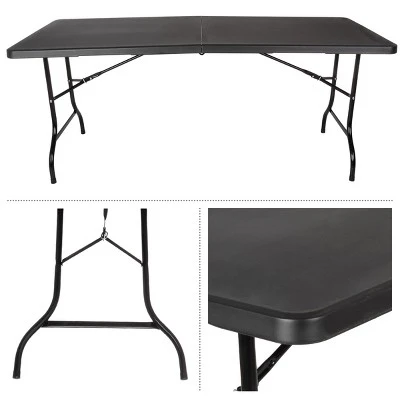 - TAKE IT ANYWHERE – The powder-coated steel frame on each portable table resists stains, and the blow mold polyethylene top makes it great for both indoor and outdoor use. The long table set folds with built-in carry handles for easy storage and transport.