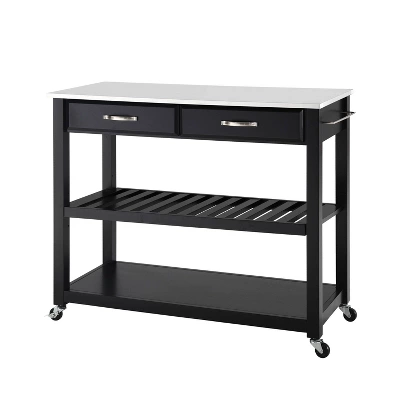 Mobility and open storage are the hallmarks of the Kitchen Prep Cart. Featuring a beautiful granitel countertop and two deep storage drawers, this cart keeps utensils close at hand while providing ample space for food prep. The slatted center shelf provides storage for wine bottles and can be removed to create space for larger kitchen items. With four casters, this cart can adapt to the changing needs of your kitchen. Simple and stylish, the Kitchen Prep Cart is an ideal solution for your every day kitchen needs.