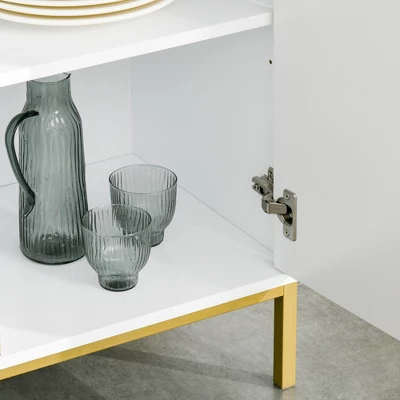 HOMCOM Modern 3 Door Accent Sideboard Storage Cabinet With Chevron Pattern And Adjustable Shelving, Natural Wood
