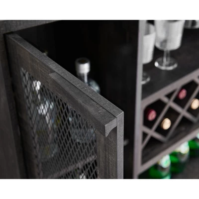 - Design: Beautiful bar cabinet with two curved doors in a alluring charcoal finish