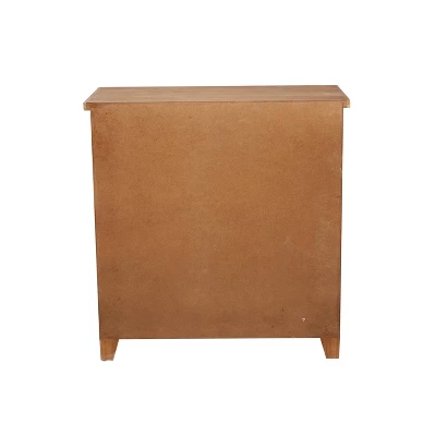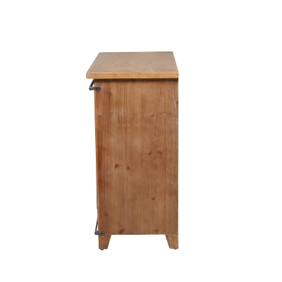 - A metal bar is bolted to the mounted wooden cabinet to hold the single sliding door