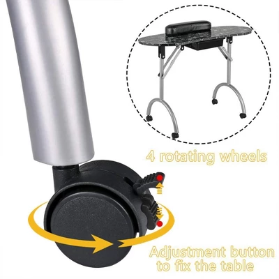 Whether you are revamping your professional salon or investing in a manicure table for personal use, the LEIBOU Professional 36-Inch Portable Foldable Technician Manicure Table is an exceptional technician desk for all levels.The round corner design creates an attractive look and prevents any potential injuries caused by bumping into the table. This desk’s foldable metal legs conveniently save space and allow the for mobility. Once set up, the 4 lockable wheels on the legs ensure the table stays in place as you begin your manicure.Provide hand support during the manicure process with the comfortable and removable wrist cushions. Utilize the carrying bag included with the purchase to safely store and transport nail accessories. This full set bundle comes with a manicure table, wrist rest cushion, drawer, and carrying bag. The nail technician table is constructed of high-density board and sturdy metal, resistant to water, and easy to clean.Upgrade your nail salon or enhance your at-home manicures with the LEIBOU Professional 36-Inch Portable Foldable Technician Manicure Table.