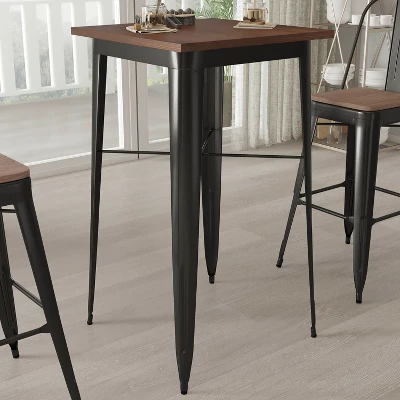 Get the best of modern engineering and rustic detailing in this indoor dining table. A silver galvanized steel frame serves as a durable and stylish base for the 23.5″ square wooden top in a beautiful walnut finish. Bracing under the top provides added durability while protective rubber glides ensure your floors stay free from scuffs, nicks and scratches. Suitable for any design aesthetic, this table is sure to be a hit with your family and guests alike. Additional Features: Designed for Indoor Use Only, Item Size: 23.5″W x 23.5″D x 42″H