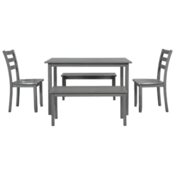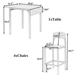 Modern 4-Piece Counter Height Extra Long Bar Kitchen Set With 3 Fabric Stools, Gold+Beige-ModernLuxe