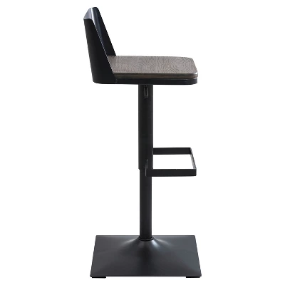 The sleek, angular construction of the Samurai Barstool is sure to make a bold statement in any living space. Lines of the rectangular-bordered backrest are echoed in the same shape of the footrest, while the combination of wood and metal contribute to an eye-catching piece. The comfy seat is perfect for long conversations, or a quick morning breakfast.