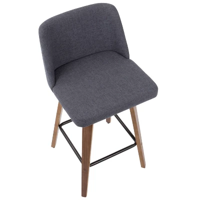 Comfort, modern simplicity, and classic lines define the appealing look of the Toriano Counter Stool by LumiSource. A padded upholstered seat sits on a fixed-height Mid-Century inspired tapered leg base with a square footrest. The comfy padded seat if perfect for long conversations, or a quick morning breakfast. Available in blue or gray, choose the color that suits your space best!