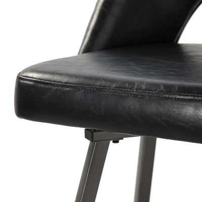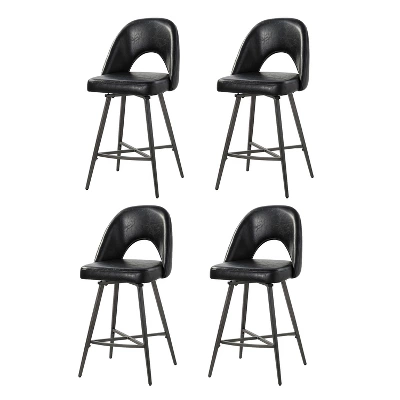 This stylish and contemporary bar stool seamlessly blends modern and mid-century modern design elements. This 4-piece bar stool with cutout design is the perfect addition to any space, whether it’s your kitchen, living room, bar, restaurant, club, cafe, or office. This 4-piece bar stool is upholstered with high-quality vegan leather, which is both durable and easy to clean. Both the backrest and seat cushion are filled with soft and supportive foam providing a comfortable seating experience that’s perfect for extended periods of sitting. The legs are made of sturdy metal, which ensures maximum stability and durability. Its durability and comfort make it a practical and long-lasting seating option for any space. Item Size:18.1″W*20.25″D*38.5″H, Seat Size:17.25″W*18.5″D*26″H.