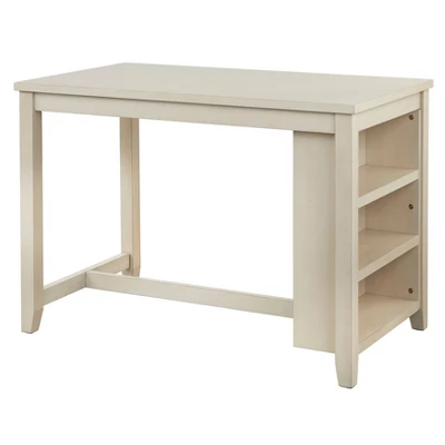 Dress up your dining area with the Tobias Counter-Height Dining Table by Lifestorey. This ideal table creates a comfortable eating area, offering additional side storage space. Three convenient open side shelves allow access to dinnerware, cookbook, and most dining essentials. Constructed of MDF and solid rubberwood in a warm Antique White finish, the 36 inch counter height table is perfect for a kitchen or cozy dining area.