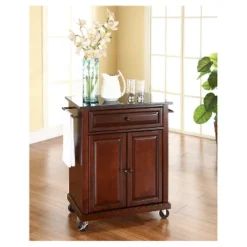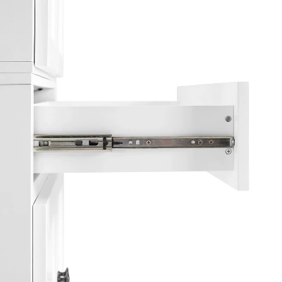 - Full-extension storage drawer on ball-bearing glides with a 15lb weight limit
