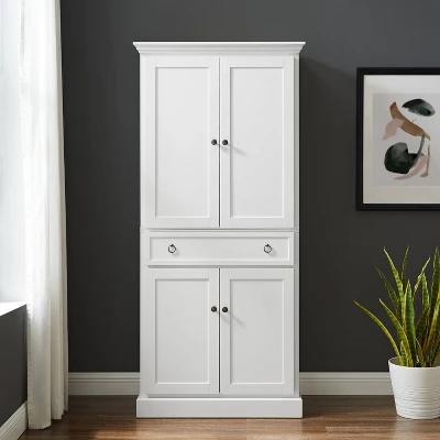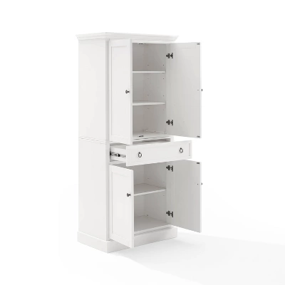 A stately kitchen classic, the Winston Pantry keeps dishes, food, and flatware organized in style. Two large cabinets feature adjustable shelves that will accommodate everything from small kitchen appliances to your favorite snacks. The center full-extension drawer is ideal for spices, dish towels, or utensils. Beautifully designed, this pantry offers plenty of storage without sacrificing style.