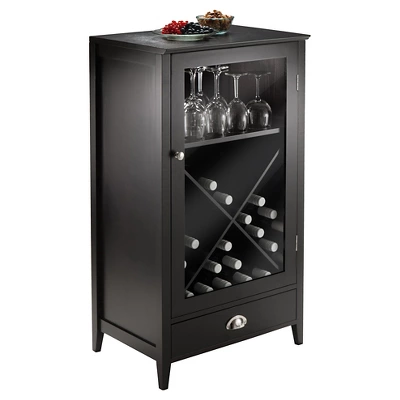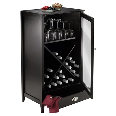 The X-Panel Modular Bordeaux Wine Cabinet – Winsome is part of the Orleans Modular Buffet. This buffet cabinet contains a drawer and cabinet in a rich walnut finish. Metal drawer pulls add a subtle shine. This buffet cabinet is great for storing wine bottles, stemware or serving accessories. Combine it with the modular buffet set, or use this wine storage solution as a stand-alone piece. Lay your wine bottles nicely with this X Shelf can store up to 24 bottles. Clear Glass Door with dark wood frame. Overall assembled size is 22.6″W x 15.75″D x 40″H.
